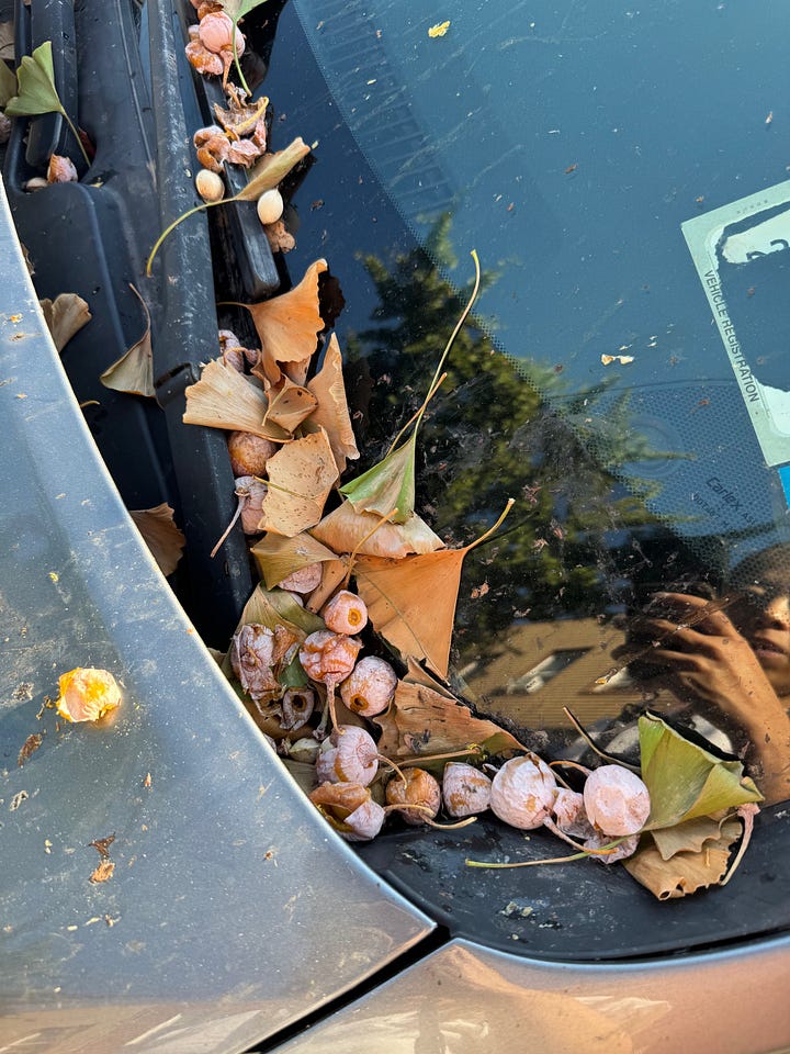 The first ginkgos were dropping when we got home: